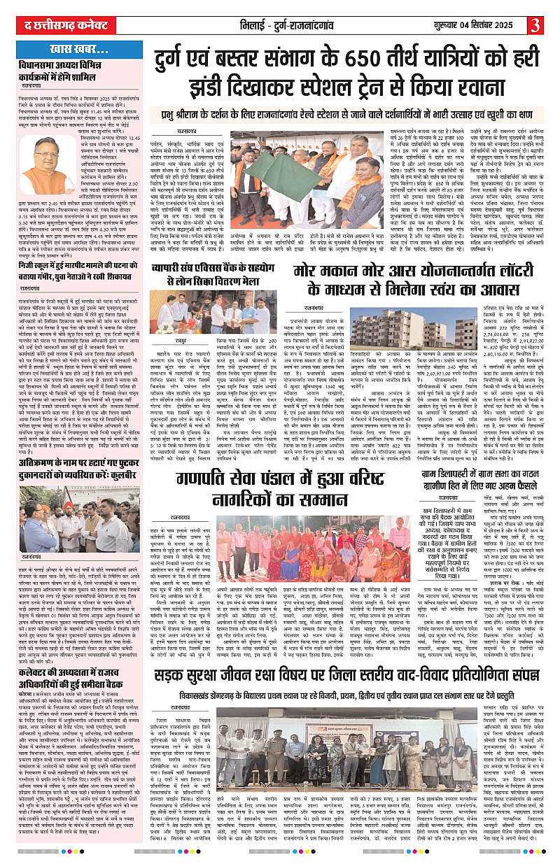 04 Sept 2025 Page: 3 September 04, 2025 04 सितम्बर 2025 का The Chhattisgarh Connect हिंदी ई-पेपर पढ़ें। छत्तीसगढ़ की ताज़ा खबरें, राजनीति, खेल, व्यवसाय, मनोरंजन और स्थानीय विशेष रिपोर्ट्स एक ही जगह। 1 2 3 4 Page 1Page 2Page 3Page 4Page 5Page 6Page 7Page 8 × 04 Sept 2025 THE CHHATTISGARH CONNECT 04 Sep 2025_page-0001THE CHHATTISGARH CONNECT 04 Sep 2025_page-0002THE CHHATTISGARH CONNECT 04 Sep 2025_page-0003THE CHHATTISGARH CONNECT 04 Sep 2025_page-0004THE CHHATTISGARH CONNECT 04 Sep 2025_page-0005THE CHHATTISGARH CONNECT 04 Sep 2025_page-0006THE CHHATTISGARH CONNECT 04 Sep 2025_page-0007THE CHHATTISGARH CONNECT 04 Sep 2025_page-0008 Download PDF File << First << 3 >> Last >> Page no 1Page no 2Page no 3Page no 4Page no 5Page no 6Page no 7Page no 8