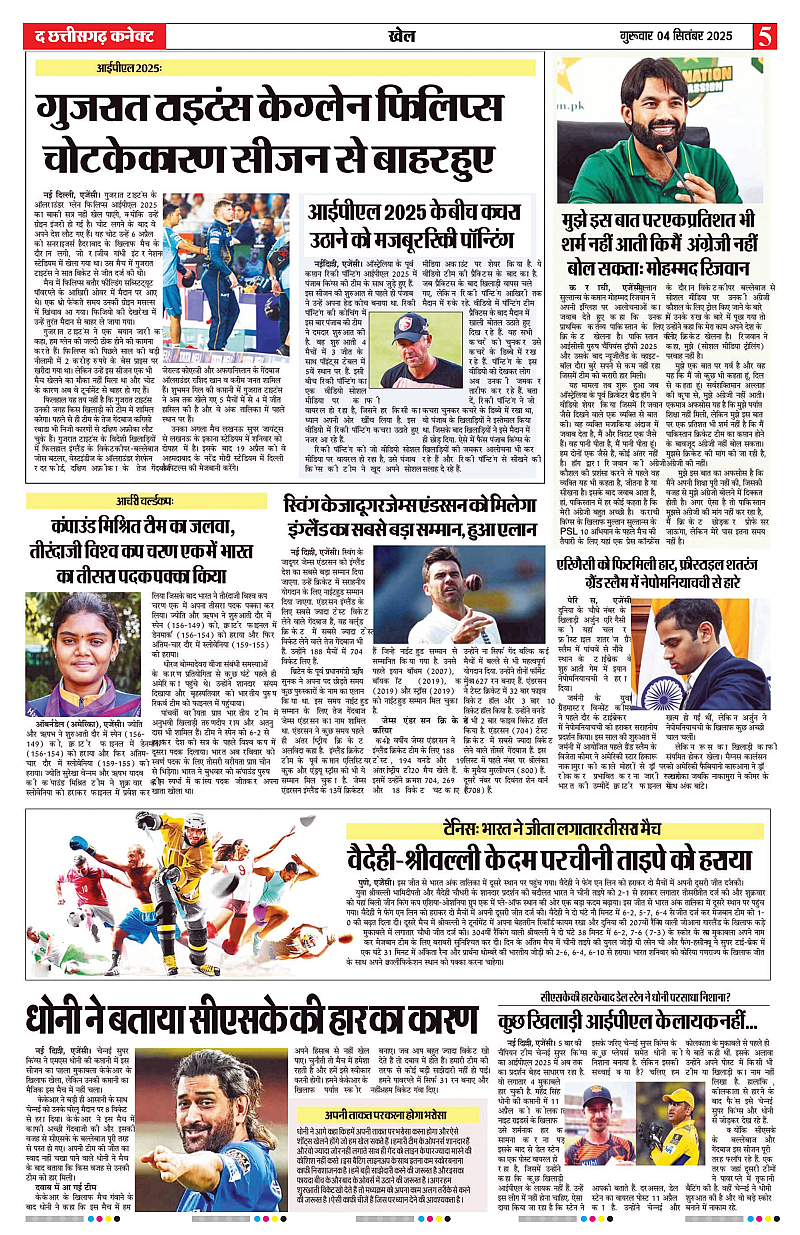 04 Sept 2025 Page: 5 September 04, 2025 04 सितम्बर 2025 का The Chhattisgarh Connect हिंदी ई-पेपर पढ़ें। छत्तीसगढ़ की ताज़ा खबरें, राजनीति, खेल, व्यवसाय, मनोरंजन और स्थानीय विशेष रिपोर्ट्स एक ही जगह। 3 4 5 6 Page 1Page 2Page 3Page 4Page 5Page 6Page 7Page 8 × 04 Sept 2025 THE CHHATTISGARH CONNECT 04 Sep 2025_page-0001THE CHHATTISGARH CONNECT 04 Sep 2025_page-0002THE CHHATTISGARH CONNECT 04 Sep 2025_page-0003THE CHHATTISGARH CONNECT 04 Sep 2025_page-0004THE CHHATTISGARH CONNECT 04 Sep 2025_page-0005THE CHHATTISGARH CONNECT 04 Sep 2025_page-0006THE CHHATTISGARH CONNECT 04 Sep 2025_page-0007THE CHHATTISGARH CONNECT 04 Sep 2025_page-0008 Download PDF File << First << 5 >> Last >> Page no 1Page no 2Page no 3Page no 4Page no 5Page no 6Page no 7Page no 8